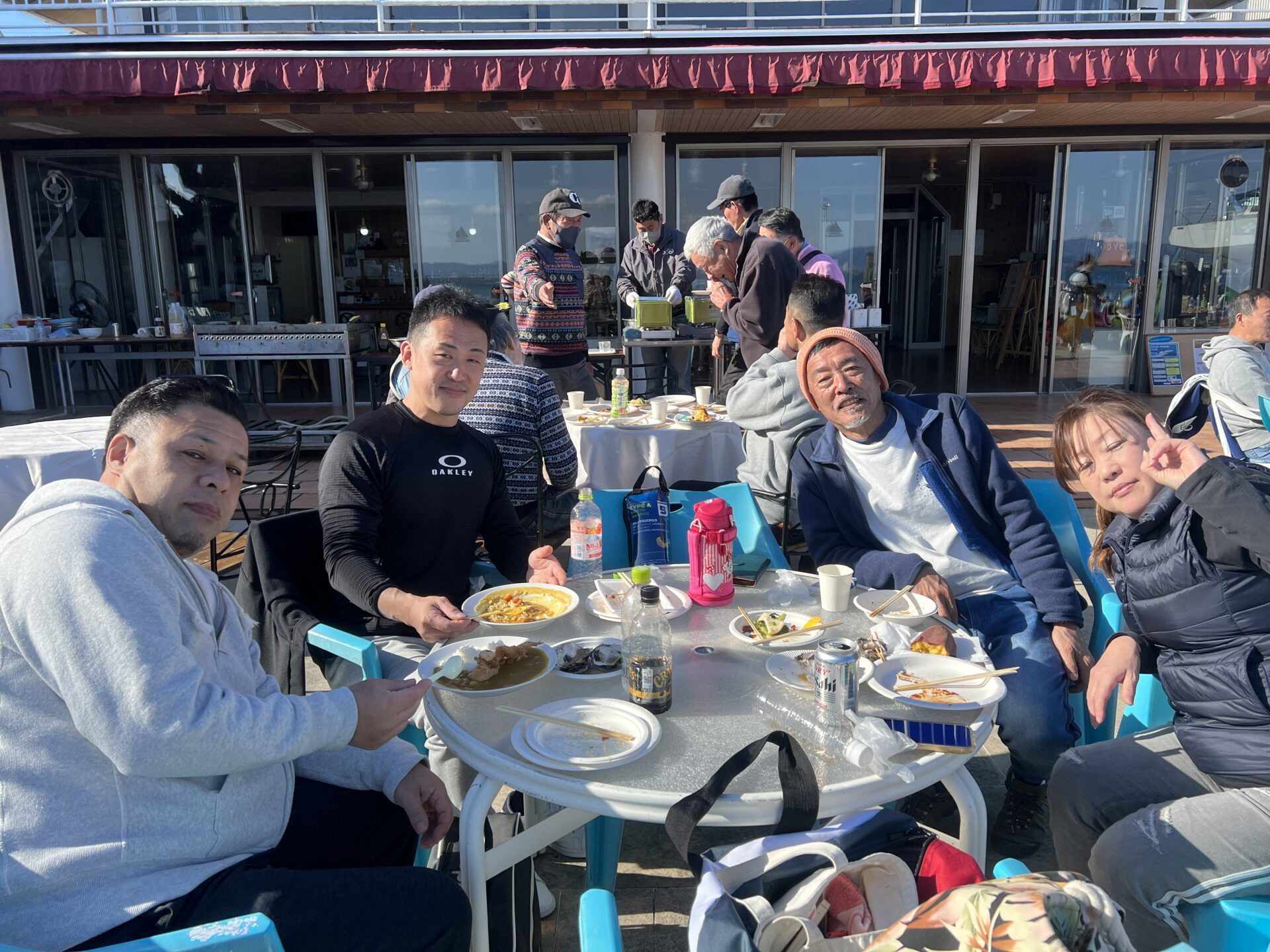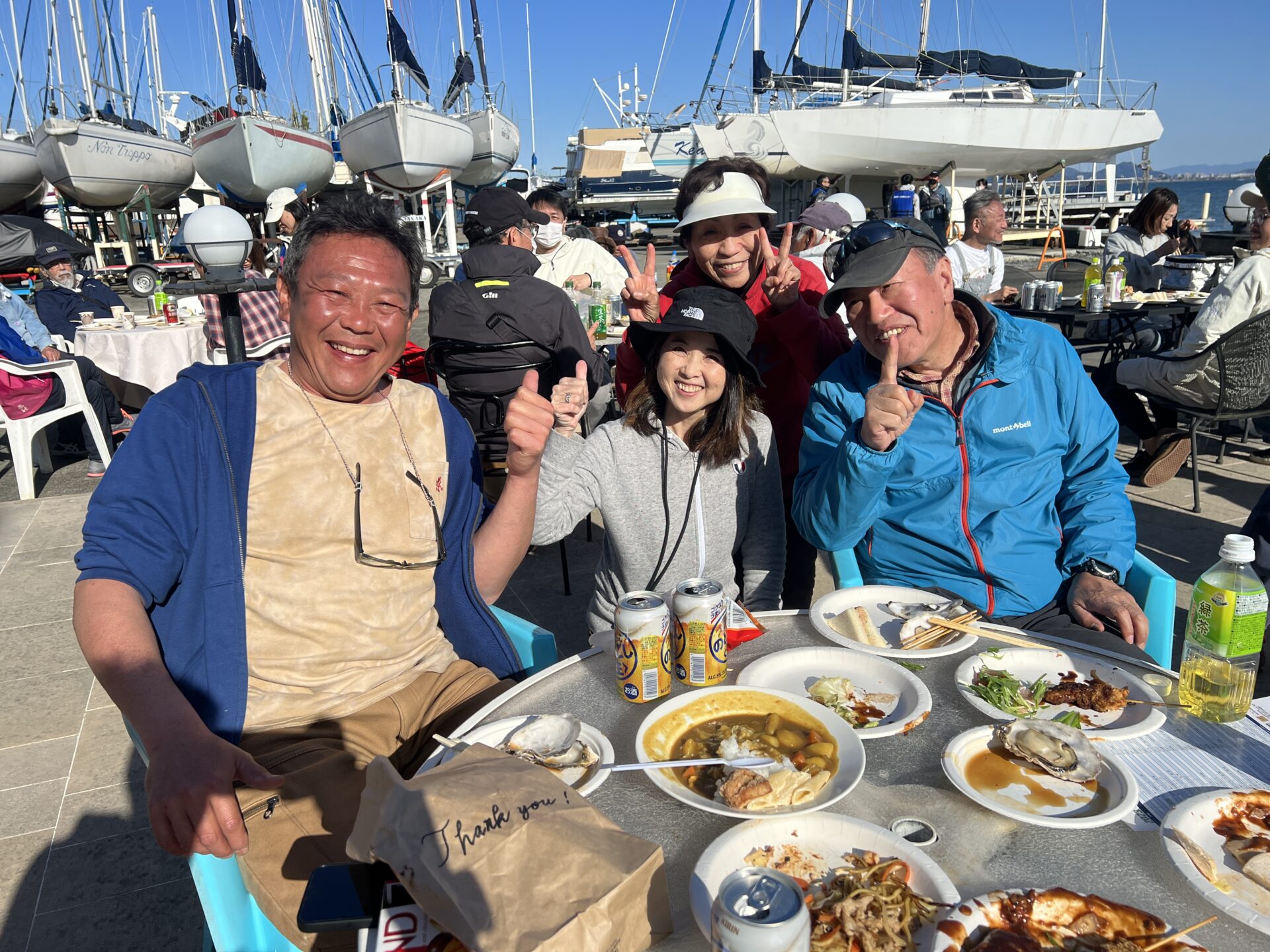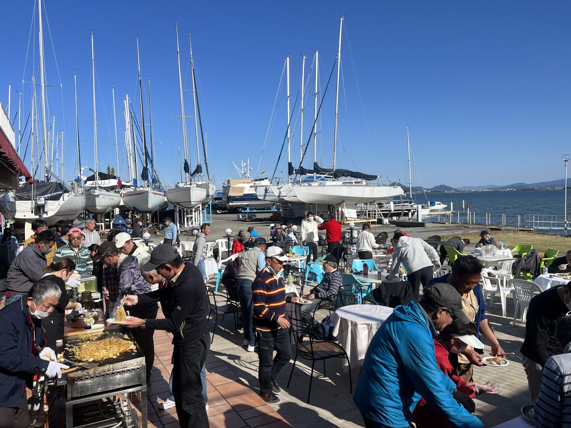 また、今回は3年振りにレース後のパーティも開催させていただきました。久々のパーティということで、マリーナからの「牡蠣のカンカン焼き」の特別提供や、ボートオーナー様による「信楽焼のかめで焼いた焼き芋販売」など様々な催しを行わせていただきました。